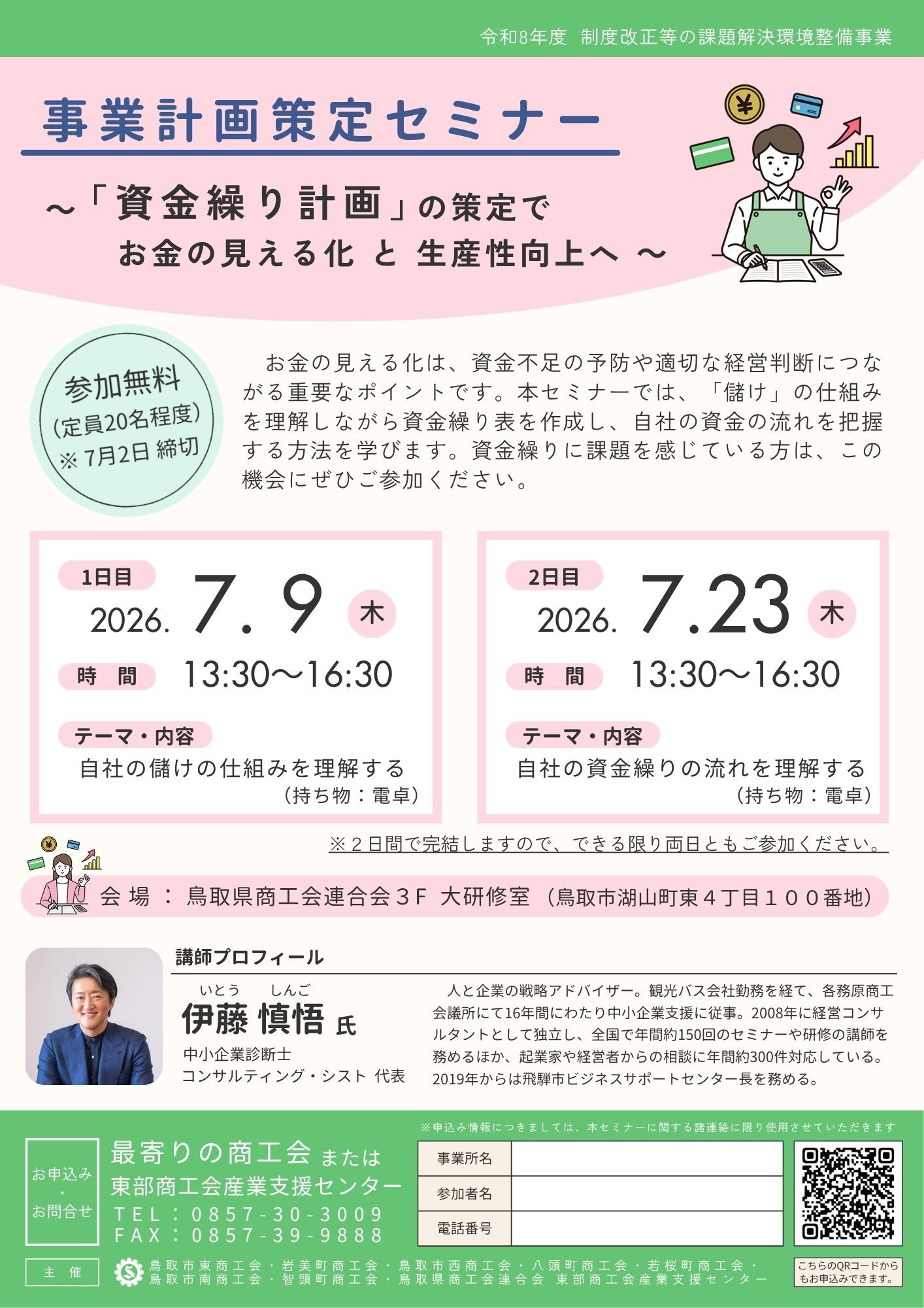 【ご案内】事業計画策定セミナー~「資金繰り計画」の策定でお金の見える化と生産性向上~